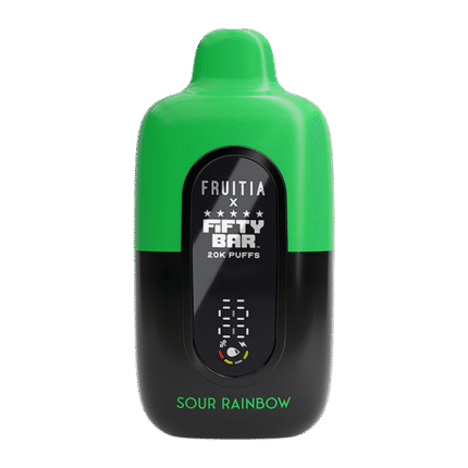 FRUITIA X FIFTY BAR 20K VAPE Flavor: The Sour Rainbow Fruitia x Fifty Bar 20K features a tart and sweet